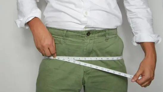 The hip measurement is taken around the fullest part of your bum. Make sure the tape is parallel to the floor.
